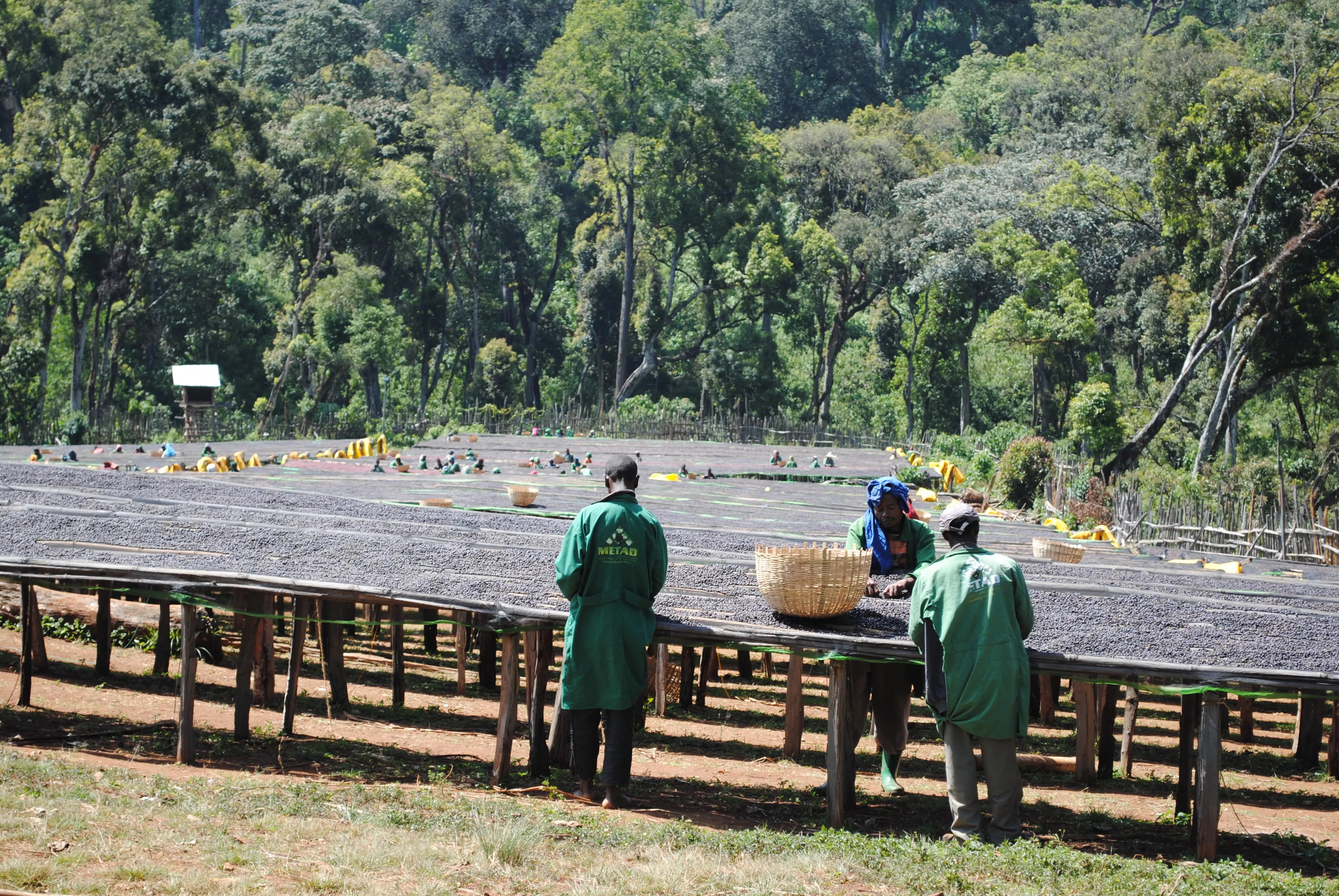 The coffee is closely monitored during the drying process to ensure it is evenly distributed until the desired moisture content is reached. The beds are open from 3 a.m. to noon, then covered when the sun is at its highest. They are reopened from 2 p.m. to 5 p.m., then covered for the night.