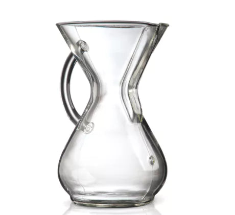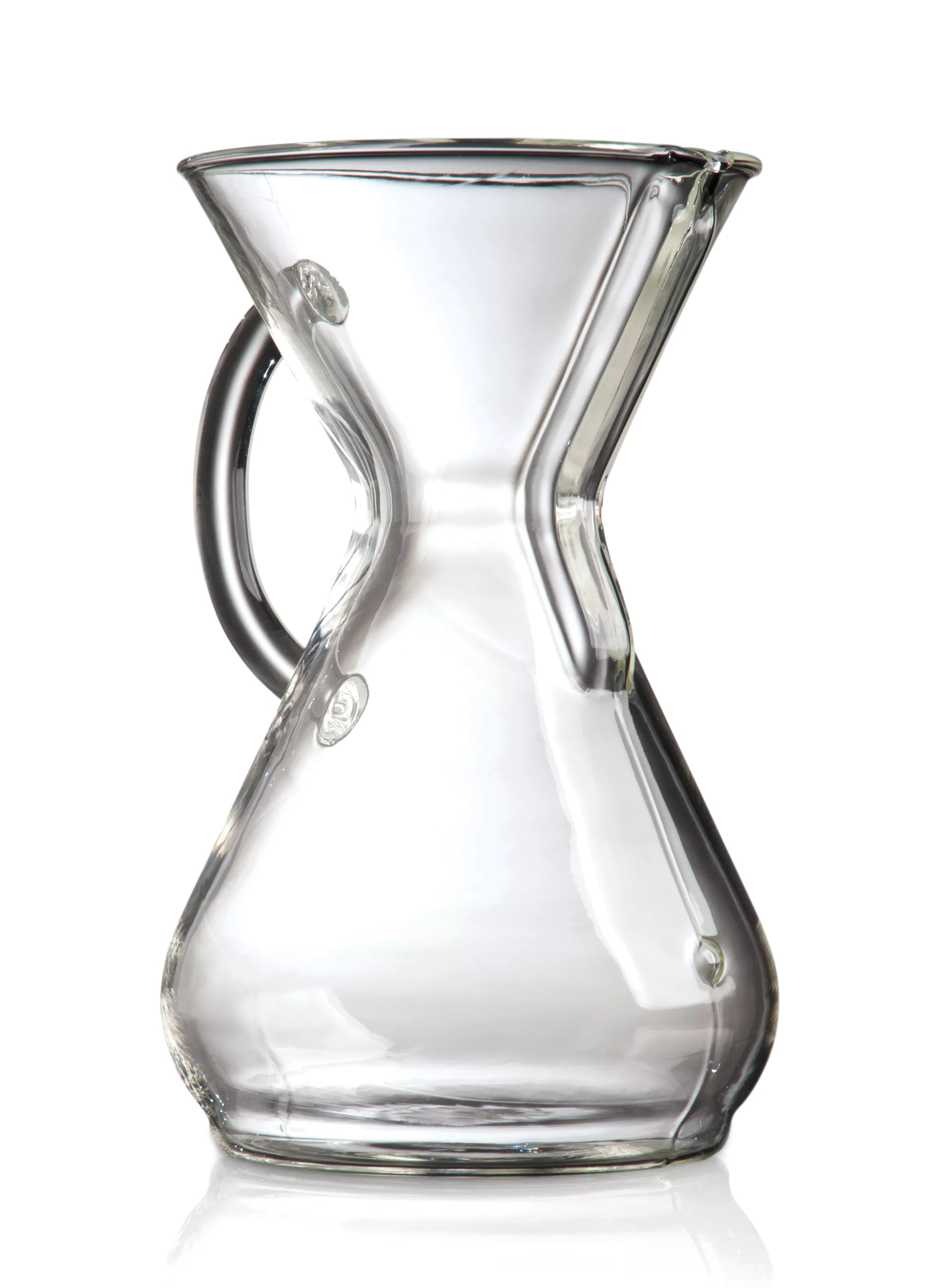 Chemex, un'emblematica caffettiera lenta riconosciuta per il suo stile iconico e la sua ingegnosità.